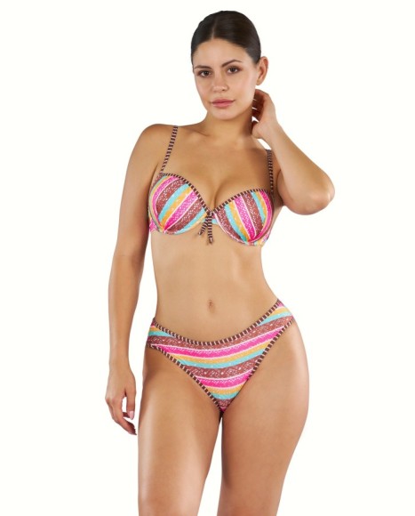 Bikini mujer a rayas con sujetador semibalconé con aro y con foam tirante regulable
