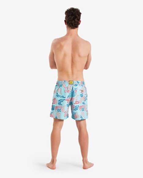 Bañador de hombre de corte largo confeccionado con tejido suave y de fácil secado de color azul claro estampado con líneas curvas de colores vivos. Destaca su cinturilla con goma y cordón ajustable, perfectos para un correcto ajuste al cuerpo. Dispone de bolsillos laterales, otro trasero y uno en el interior. Su forro interior es de tejido suave, agradable al tacto y de secado muy rápido. Composición: EXT. 100% Poliéster/Polyester - FORRO: 95% Poliéster/ Polyester, 5% Elastano/ Elastane Instrucciones de lavado: Lavar a mano / No usar secadora / No planchar / No usar lejía / No lavar en seco / No escurrir
