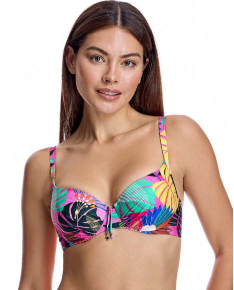 Top bikini para mujer capacidad con aro y refuerzo bajo pecho en color fucsia