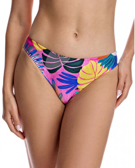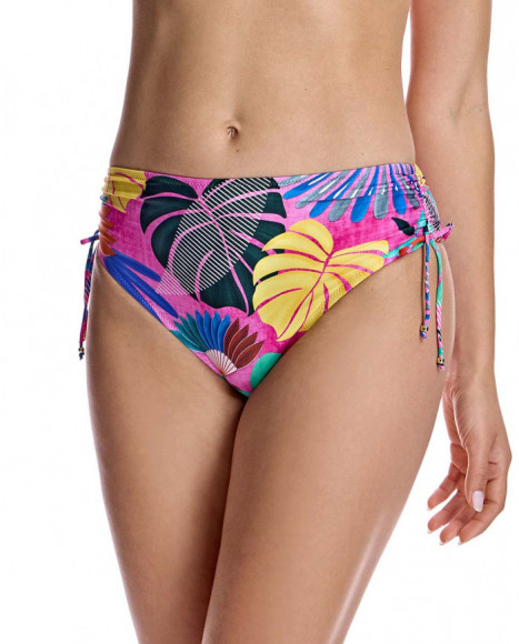Braga de bikini para mujer clásica pierna más baja con costado regulable en color fucsia