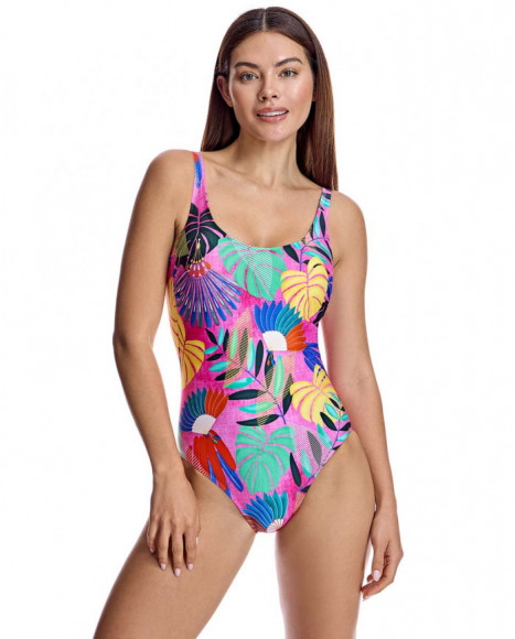 Bañador escote cuadrado estampado floral. Completamente forrado. Disponible en copa C y D. Tejido de vanguardia con un alto poder moldeador, con una alta resistencia al cloro, cremas y aceites bronceadores y excelentes propiedades de absorción de la humedad.