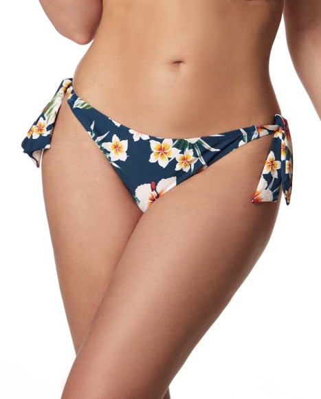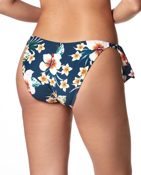 Braga de bikini de tiro bajo con lazos laterales graduables, que permiten regular el ajuste. La prenda está completamente forrada para que no transparente. La parte posterior presenta un corte estándar. Estampado con flores de hibiscos muy favorecedor y juvenil. Composición: EXT: 80% Poliamida - 20% Elastano / INT: 77% Poliéster - 15% Elastano - 8% Poliamida Instrucciones de lavado: Lavar a mano / No usar secadora / No planchar / No usar lejía / No lavar en seco / No escurrir