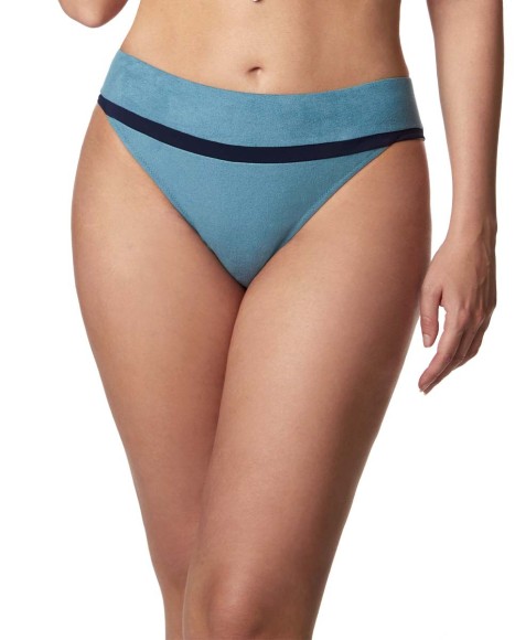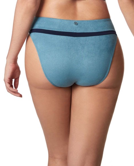 Braga de bikini clásica a cadera, muy cómoda y perfecta para todo tipo de siluetas. Un modelo muy especial de cobertura media-alta, con corte en la cintura, muy favorecedora. Comodidad sin perder la estética. La prenda está completamente forrada y la parte posterior presenta un corte estándar. Con tejido de antelina en azul celeste, cuya característica principal es que es muy suave. Composición: EXT: 87% Poliamida - 10% Elastano - 3% Lycra / INT: 84% Poliéster - 16% Elastano Instrucciones de lavado: Lavar a mano / No usar secadora / No planchar / No usar lejía / No lavar en seco / No escurrir
