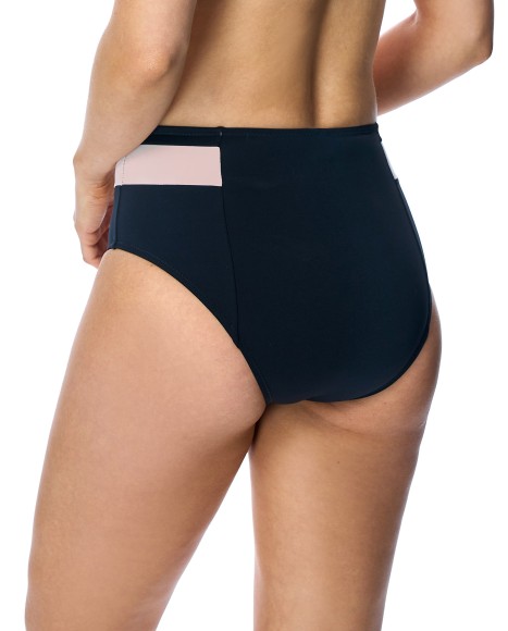 Braga de bikini talle alto con tejido en color negro y rosa. Tejido de vanguardia con excelente factor de protección UV, excelente cobertura, comodidad adicional y bielástico. Disponible en Copa B y C, copa con tejido de revestimiento cepillado en el interior y exterior.
