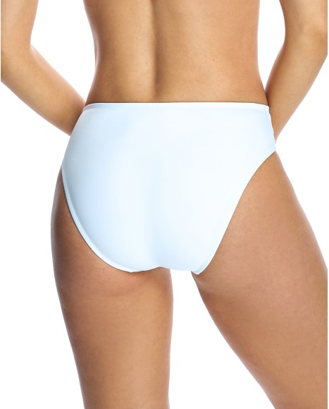 Braga de bikini costado más alto con tejido liso en blanco y dorado. Pertenece a la Colección Ory Private. Completamente forrada. Tejido de vanguardia ultrarresistente al cloro, con protección UV, resistente al pilling, transpirabilidad IC, contención muscular, excelente cobertura, ajuste perfecto, comodidad adicional, bielástico y resistente a cremas y aceites solares.
