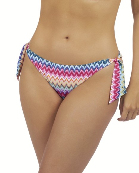 Braga brasileña de talle bajo con lazos, un modelo básico de Carey. Con estampado multicolor en rayas zigzag. ¡Super favorecedor y muy juvenil!