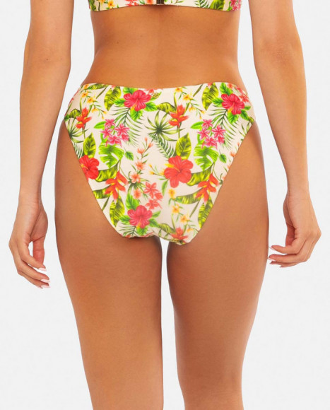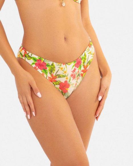 Braguita de bikini mujer color beige con estampado tropical tipo brasileño y lazos laterales