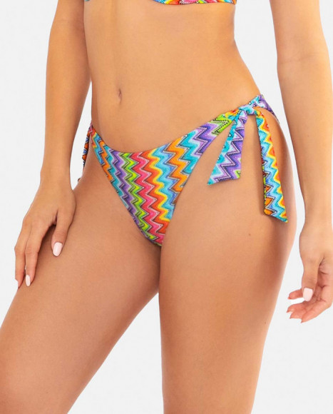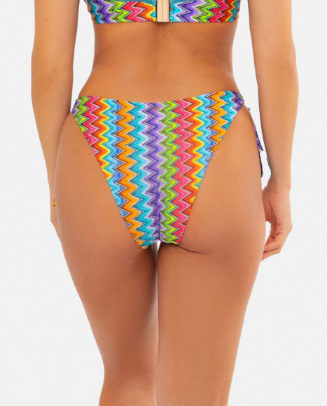 Braga de bikini mujer color azul con estampado zigzag y altura media
