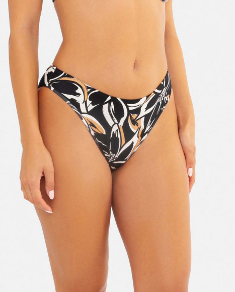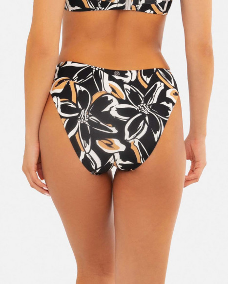 Braguita de bikini para mujer en color negro con estampado floral y lazos laterales.