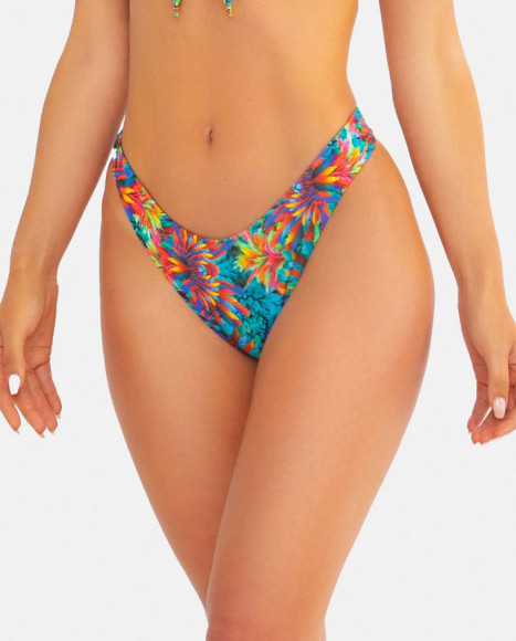 Braguita de bikini para mujer en color azul con estampado tropical y cintura alta ajustable