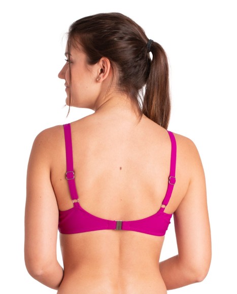 Sujetador de bikini con aros ocultos y forro interior. Especialmente diseñado para pechos generosos. Best Seller Carey. Recoge y sitúa el pecho correctamente. Realza tu figura en la playa y le da una forma maravillosa al busto gracias a su estructura y reforzados interiores como un efecto reductor con un look muy natural. Tirantes regulables para una perfecta sujeción. Otra información: Aro - Tirantes regulables EXT. 72% Poliamida - 28% Elastano / INT. 57% Elastano - 41% Lycra - 2% Poliamida