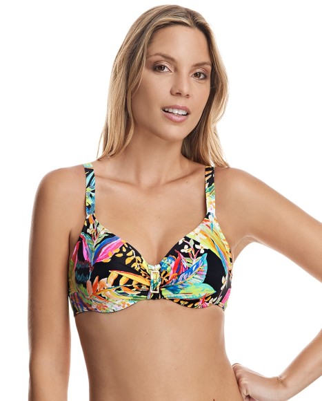 Sujetador de bikini corte sisa capacidad con aro con estampado floral multicolor en tonos fluor. Espaldas completamente forradas. Disponible en Copa C y D. Otra información: Con aro - Máxima sujeción Composición: EXT: 80% Poliamida - 20% Elastano / INT: 57% Elastano - 41% Lycra - 2% Poliamida Instrucciones de lavado: Lavar a mano / No usar secadora / No planchar / No usar lejía / No lavar en seco / No escurrir