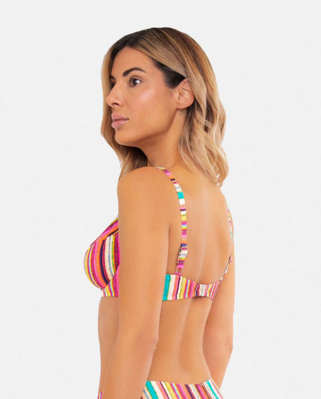 Top de bikini mujer color amarillo con estampado tie-dye y detalle de abalorios