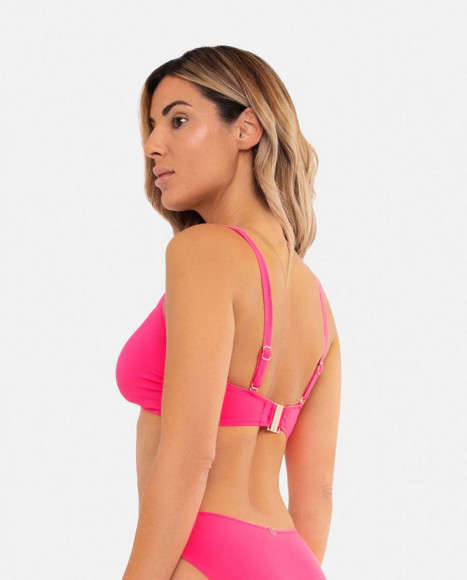 Top de bikini mujer color fucsia bandeau con detalle fruncido