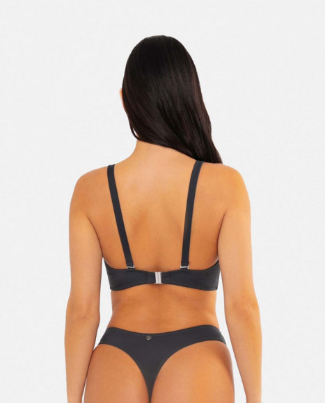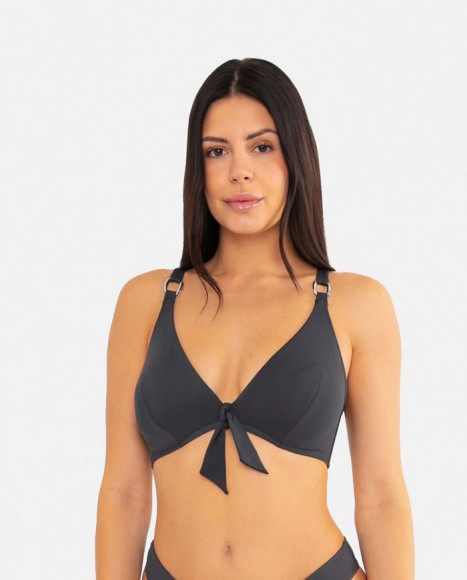 Top de bikini para mujer en color gris oscuro con detalle de aro frontal.