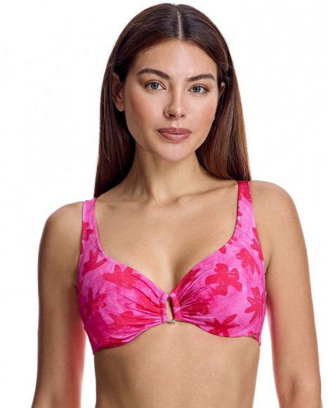 Braga de bikini para mujer clásica tipo faja con refuerzo delante en color fucsia