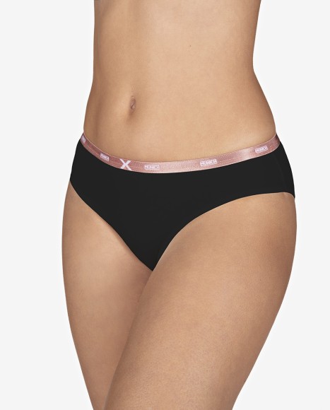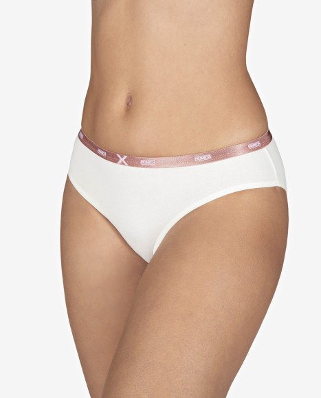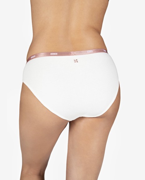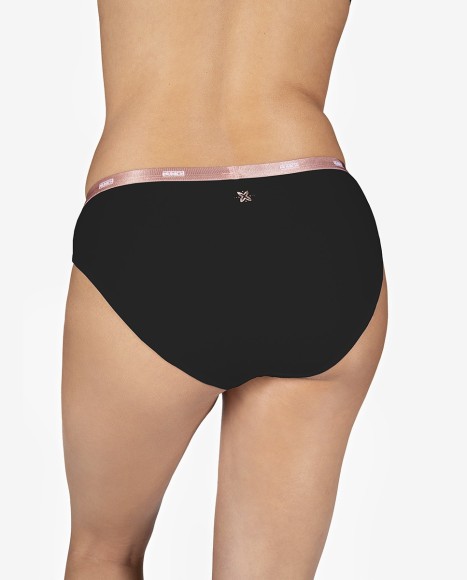 Pack de 3 braguitas de algodón, dos en tonos básicos, negro y crudo, y un tercero micro estampado geométrico brillante. Confeccionadas con algodón de alta calidad, gran suavidad al tacto. La cinturilla de goma elástica plana agradable al tacto con el logo Munich y elástico invisible en las piernas. En la parte superior trasera hay el logotipo Munich pequeño estampado en color cobre brillante a juego con la goma elástica.