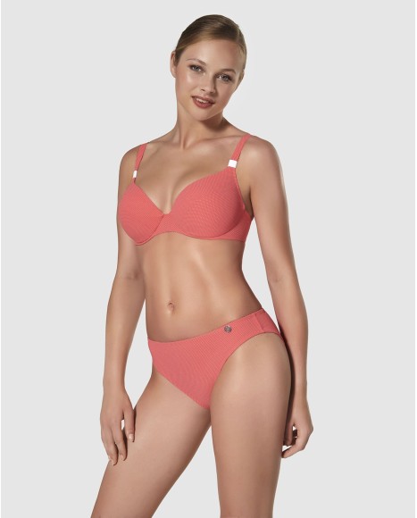 Sujetador de bikini con aros ocultos y forro interior. Especialmente diseñado para pechos generosos. Best Seller Carey. Recoge y sitúa el pecho correctamente. Realza tu figura en la playa y le da una forma maravillosa al busto gracias a su estructura y reforzados interiores como un efecto reductor con un look muy natural. Tirantes regulables para una perfecta sujeción. Otra información: Aro - Tirantes regulables EXT. 86% Poliamida - 14% Elastano / INT. 57% Elastano - 41% Lycra - 2% Poliamida