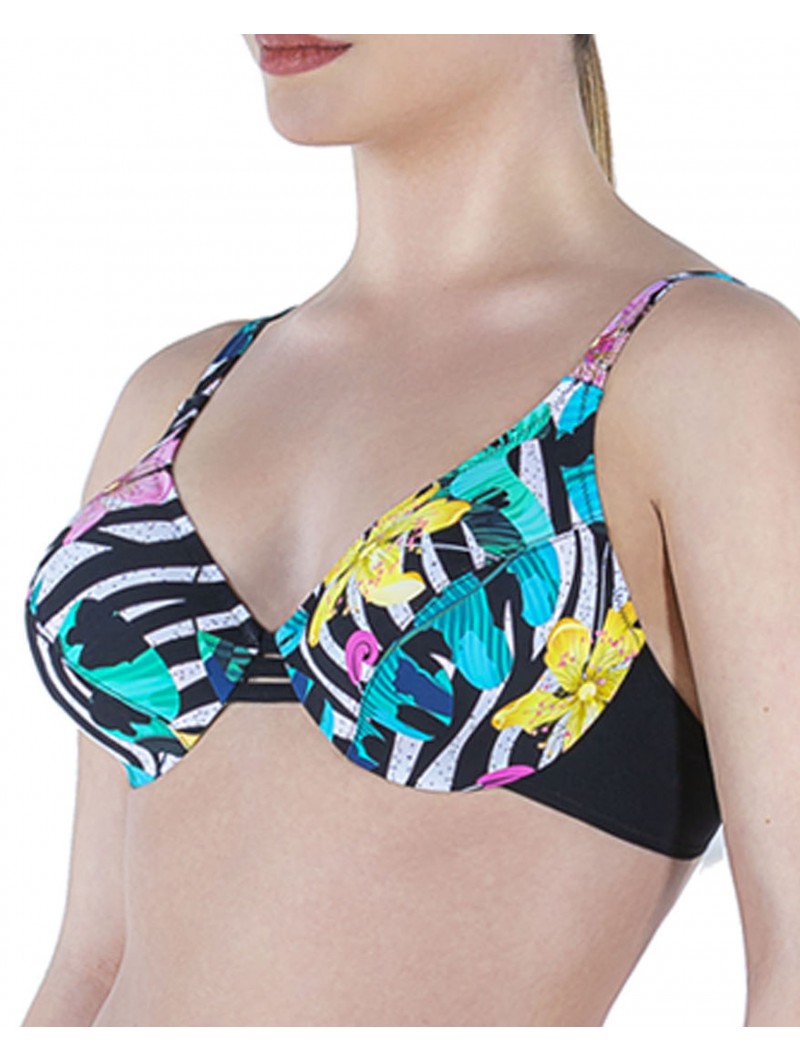 Top bikini de capacidad de estampado floral combinado Tropical cebra