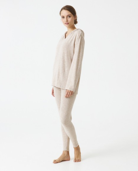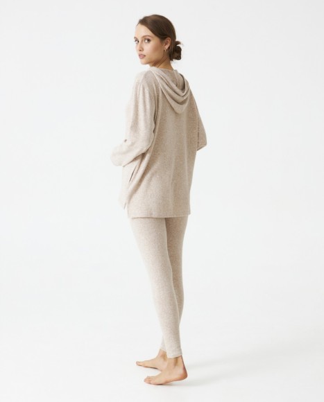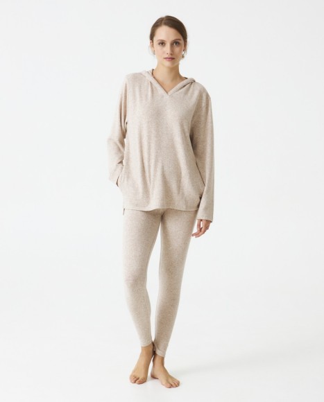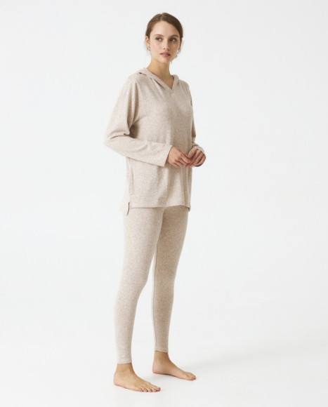 Pijama señora tejido perchado extra suave. Capucha. Bolsillos centrales. Pantalón legging.