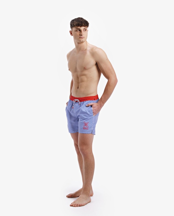 Bañador largo con estampado geométrico, cinturilla a contraste y logotipo bordado en un lateral Composición: 100% Poliéster