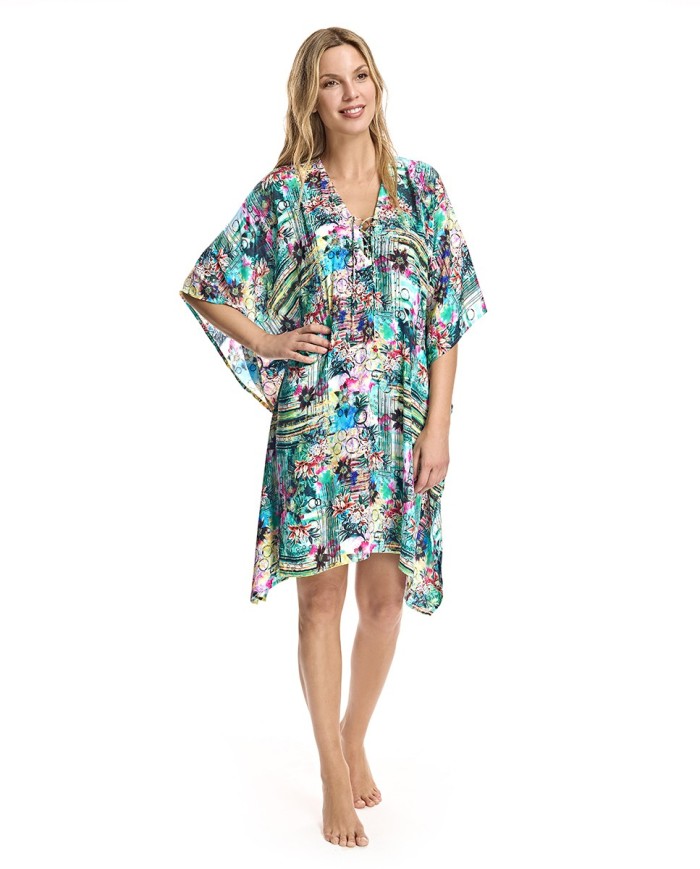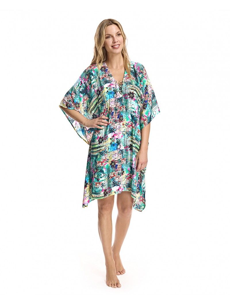 Kaftan Ory con estampado oriental multicolor. Composición: 100% Poliéster Instrucciones de lavado: Lavar a mano / No usar secadora / No planchar / No usar lejía / No lavar en seco / No escurrir