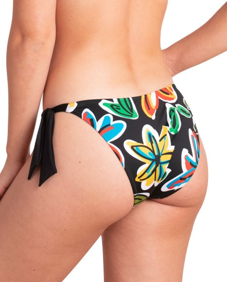 Elige como parte de abajo una braguita con lazos laterales para ajustarla a tu gusto. Braguita de bikini de tiro bajo con lazos laterales graduables, que permiten regular el ajuste. La prenda está completamente forrada para que no transparente. La parte posterior presenta un corte estándar. EXT. 83% Poliamida - 17% Elastano / INT. 78% Poliéster - 15% Elastano - 7% Poliamida