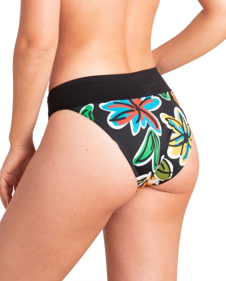 Un básico que nunca falla, una braguita de bikini clásica a cadera, muy cómoda y perfecta para todo tipo de siluetas. Un modelo muy especial de cobertura media-alta, con corte en la cintura, muy favorecedora. Comodidad sin perder la estética. La prenda está completamente forrada y la parte posterior presenta un corte estándar. EXT. 85% Poliamida - 15% Elastano / INT. 84% Poliéster - 16% Elastano