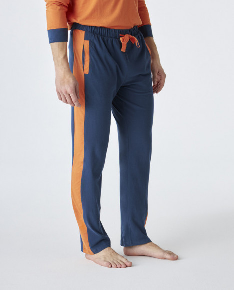 Pijama de hombre de algodón de color naranja y azul