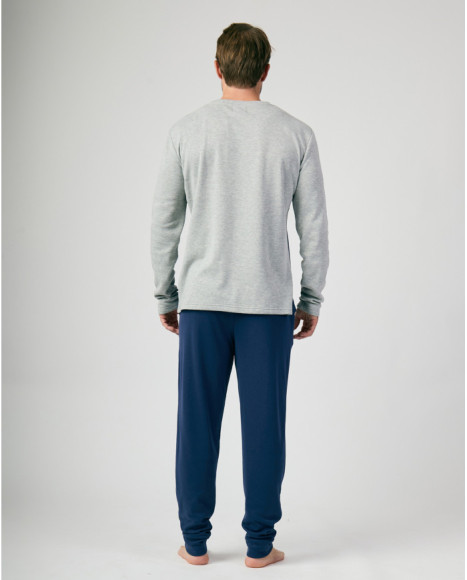 Pijama de invierno para hombre en azul y gris con bloque de color