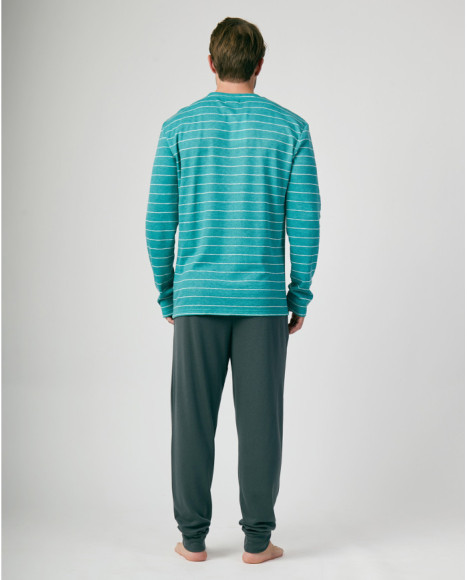 Pijama largo para hombre en verde con rayas finas