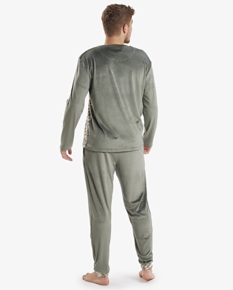 Pijama hombre de terciopelo combinado caqui y estampado militar glam