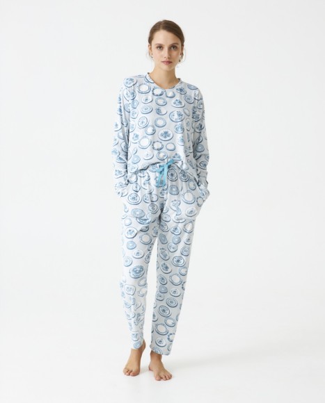 Pijama señora terciopelo estampado super soft. Puños en mangas y bajos pantalón. Bolsillos laterales.