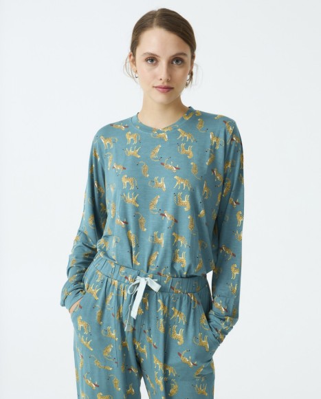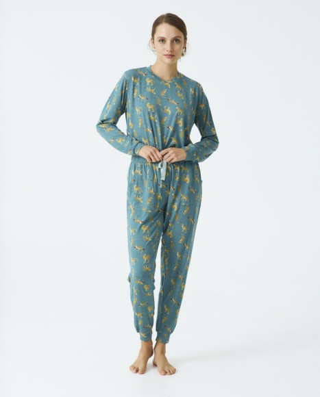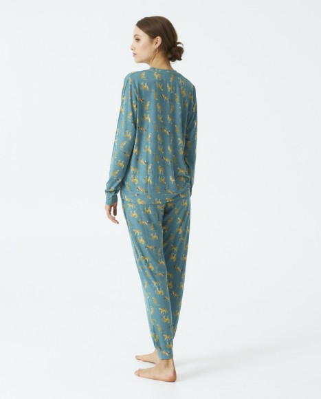 Pijama señora modal. Estampado cheetah. Puños en mangas y bajos pantalón. Bolsillos laterales.