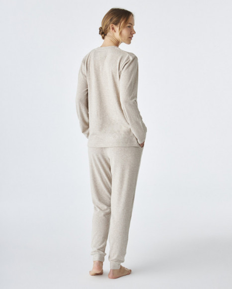 Pijama de mujer de punto de color beig