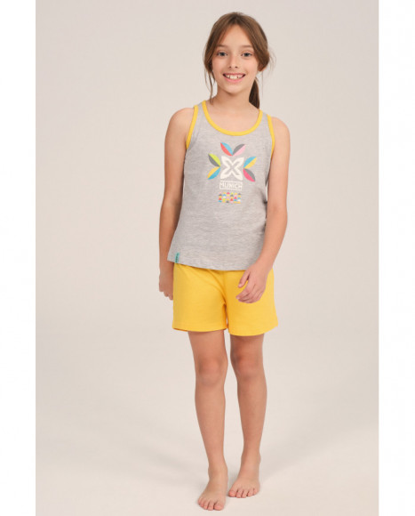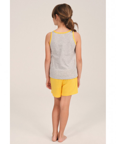 Pijama de tirantes para niña en gris y amarillo con estampado Munich.