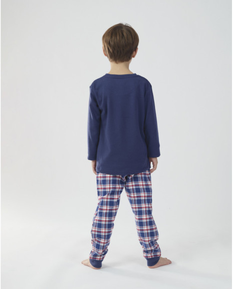 Pijama de invierno para niño con camiseta azul y pantalón de cuadros