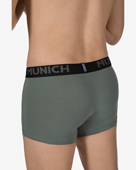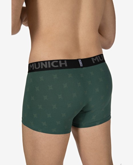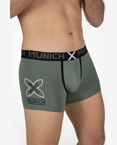 Pack de 2 bóxers de algodón de color caqui y color verde botella estampado con micro logos Munich y con vivos a contraste. Confeccionados con algodón de alta calidad, gran suavidad al tacto. La cinturilla de goma elástica plana agradable al tacto de color negro, con el logotipo Munich en color gris oscuro y cruz blanca en el centro. En el lateral del bóxer caqui destaca el logotipo Munich estampado.